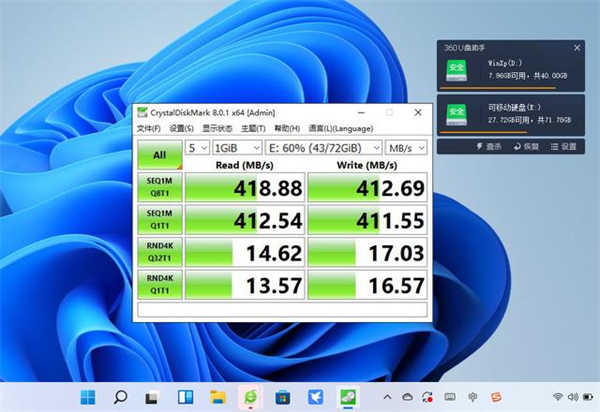 接口的理论上限可达500MB/s所以只要是读写速度低于这个水平的硬盘均可接近其工作上限。搭配我使用了一段时间的这款SSD硬盘,其巅峰时速度可达550MB/s这也是当年我选择它的原因,如今速度衰减了不少,初次格式化后还能达到410MB/s的读写水平。