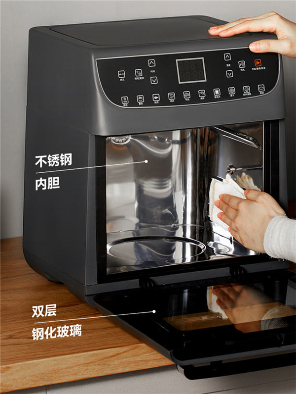 使用完厨具到了最让人头疼的环节,很多爱烹饪的人都是爱下厨不爱收拾,尤其部分厨具的清理环节都是很头痛的。但在这台西屋新款空气炸烤箱上,清洗不再是麻烦事,日常清洁只需要拿抹布(可以稍稍加入一点清洁液)或者厨房湿巾,在它的不锈钢内胆中擦拭即可,最后再用干净抹布擦拭一次再使用。