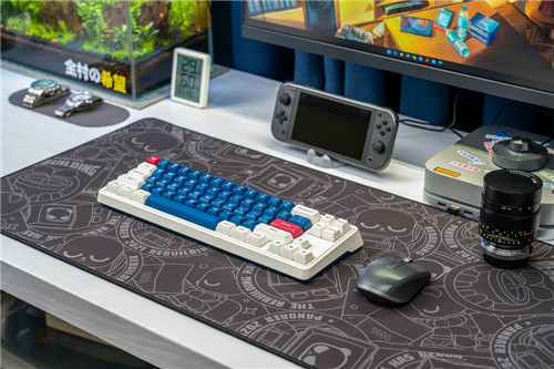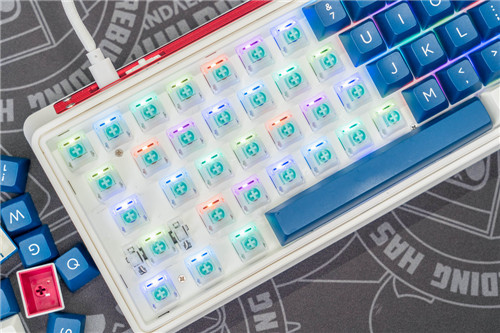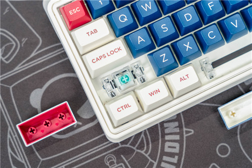 CMK68-SAM使用的冰薄荷轴-MX轴体,操作力40gf,触发行程1.8mm,总行程4.0mm。同样有着传统线性轴体的键程长、压力克数小的特点,较段落轴体来说,线性的弹簧偏肉,打字舒适度有一定的提高同时兼顾了敲击声对旁边的影响,但是损失了部分“确认感”,用“直上直下”形容最好不过了。当然提前段落的轴体由于前段压力较大,所以在触地行程重缺少后续的反馈,在游戏中就增加了肌肉反应时间,表现一般了。所以,两者各有千秋,但有一点是可以肯定的,就是从线性往段落轴体过渡很简单,如果平时就喜欢段落感的轴体那么开始使用线性的时候会明显感觉“没劲”。