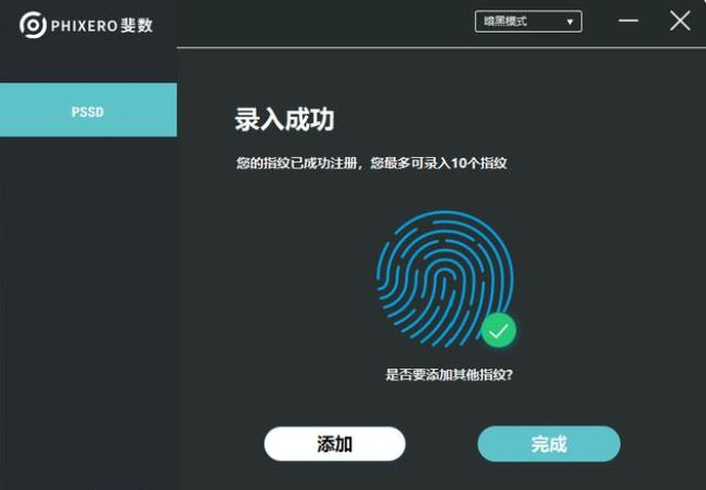 打开软件后,可以看到软件本身设计得非常简洁,提供了黑白两色的主题。在主页能看到硬盘的容量,进入设置,可以为硬盘设置密码,设置好密码,就可以添加指纹了,在电脑端使用,除了可以通过指纹解锁,也可以通过密码来解锁。