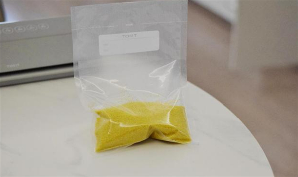 这个就是抽真空后的小米,是不是感觉和商场里卖的小米差不多了,这样不仅可以长时间保存,同时也比较好放置,当然如果你想每次使用很少,其实也可以买那种小袋子,做一次小米粥就导入到电饭煲一袋,这个看大家需求。