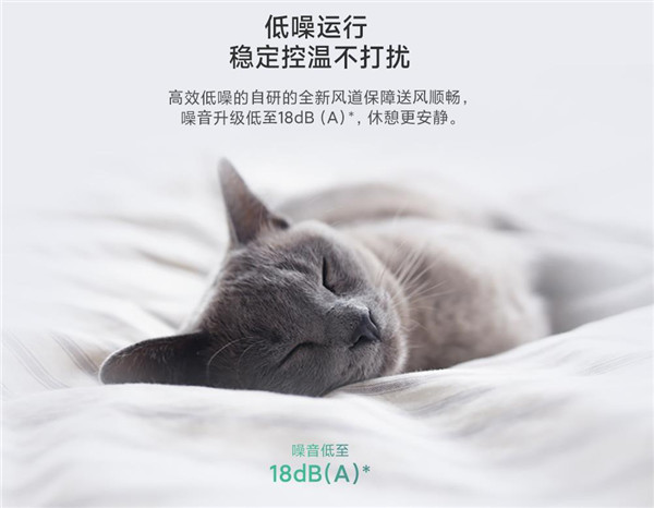 高效低噪大直径贯流风轮系统保障送风顺畅,噪音低至18dB (A),休憩更安静。
