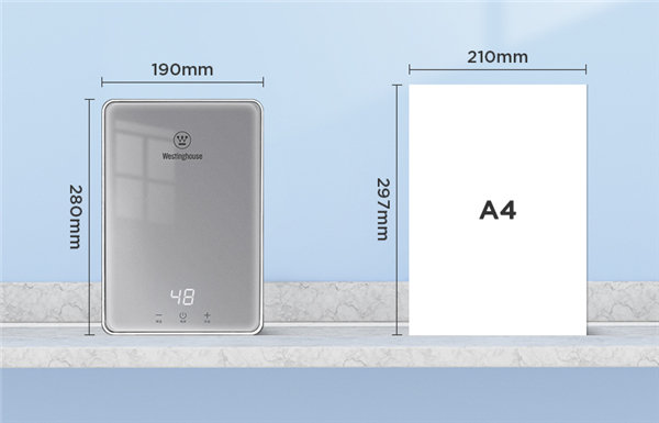 西屋即热小厨宝DSFH5511电热水器机身十分纤薄,仅有一张A4纸大小,可以很好地隐身于橱柜下方,洗衣机后侧等等狭小区域,默默工作为你带来热水,另外轻触式显示屏,可视化精准调温,只需要轻轻按动就能调节水温,老人小孩都能轻松使用,安装了它,家人们打开水龙头就是热水,不烫手不冻人,生活变得如此美妙。