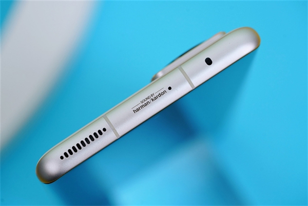接口方面,上下双扬开孔,内部共提供了四个扬声器的立体声系统,顶部红外、麦克风开孔、SIM卡槽等也都一个不少,还有哈曼卡顿的认证图标,音频方面不论硬件还是软件都十分给力。