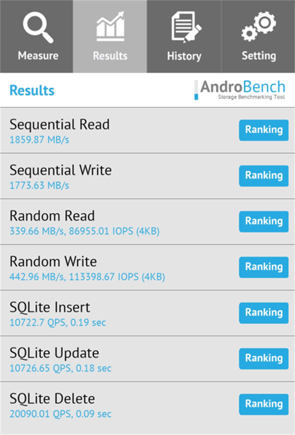 持续读取速度1859.87 MB/s,符合UFS 3.1的速度表现。
