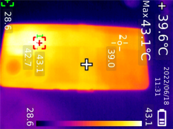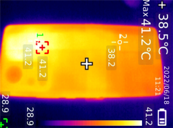 《原神》测试进行到10分钟时,后盖温度最高41.2℃,20分钟后,后盖最高温度仅有43.1℃。