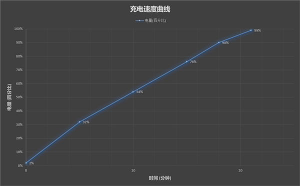 我们体验了一下。23分钟电量到达99%,如果没有我们中途亮屏查看电量拖低充电速度,18分钟充满轻轻松松。