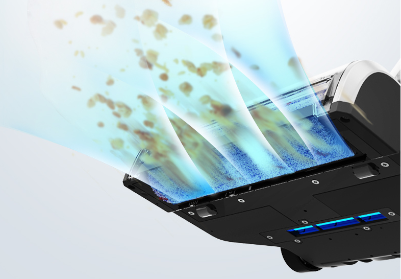 地刷的底部有一条宽宽的UV灯管,使用中可以开启UV杀菌的功能,紫外线物理照射地面,杀菌的同时不会有化学物质残留,家里有孩子或者宠物也会更加安心。同时UV灯管有自动保护设计,紧贴地面时才会工作,抬起机身到一定角度或者提起机身超过一定高度,UV功能就会自动关闭,不用担心会直射影响家人。
