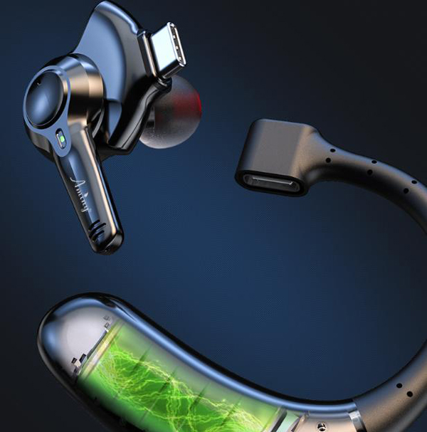 艾米尼UFO4无线蓝牙耳机能支持TYPE-C充电接口,耳机充满电可使用30个小时,听歌通话可持续30小时,待机可达到200小时,可循环播放超260首歌曲,它拥有145mAh的电池容量,充满电只需2小时。
