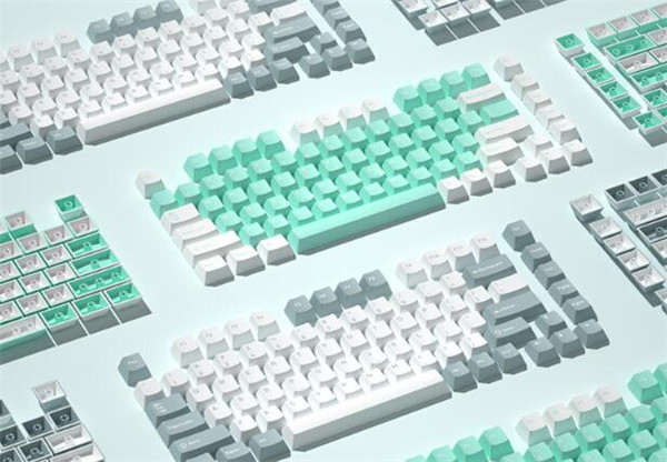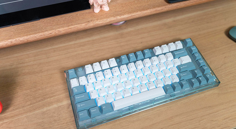 腹灵Q75机械键盘中间常用按键采用的是纯白色键帽,功能键采用的灰蓝配色,看着很清新,像极了莫兰迪配色风格。