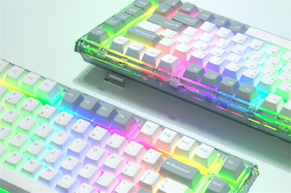 没有灯光效果加持下,腹灵Q75机械键盘的颜值已经很耐看了,而腹灵Q75机械键盘凭借高光镜面外壳和半透明的PC定位板设计,让这款键盘的光效变得更绚丽。