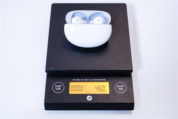 总量上也是做到没有负担,耳机加充电仓的重量仅仅46g,单单只有两个耳机的话,总量更是只要8.7g,在使用时不会有种的感觉,非常舒适,长时间佩戴也不会感觉难受!