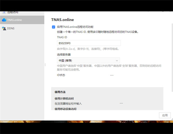 而通过官方的TNAS.online就可以实现异地访问,从系统的后台填写好ID和访问密码即可,外部访问的速度实测也是非常快的,而且很稳定。