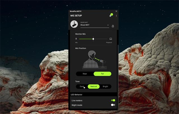 除了使用触控面板进行操作外,舒尔还提供了ShurePlus MOTIV,用以对麦克风进行更多的设置调整,包括桌面版本和移动版本。ShurePlus MOTIV提供了自动电平和手动两种模式。对于新手或者不是特别擅长硬件的用户来说,自动电平提供了非常好的使用体验,你只需根据话筒位置,选择远或者近,并选择期望的音质,剩下的都交给软件就可以了。而在手动模式里,你可以对你的话筒进行更多更为详细的设置,这对进阶型用户来说,就非常适合了。