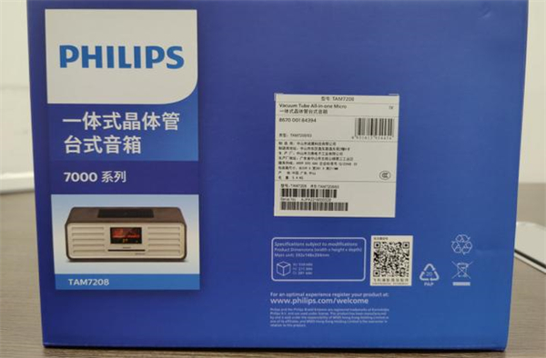 △箱体的渐变蓝,是飞利浦影音高端系列一贯的风格和格调,透过盒子就感受到了音响本身的复古气息。
