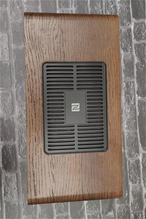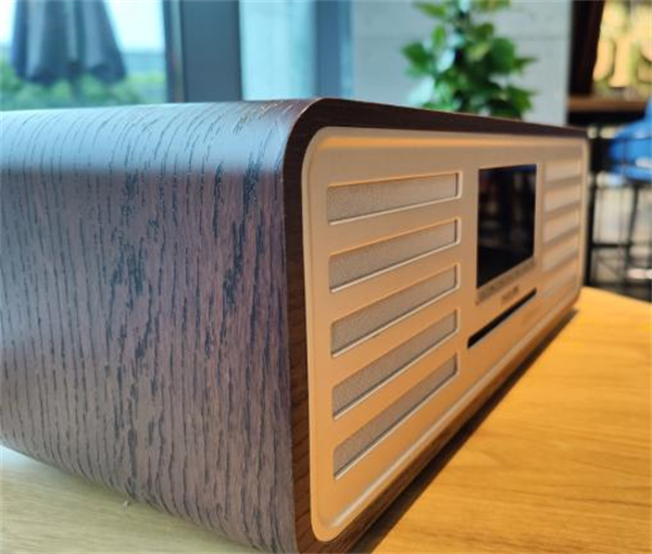 △音响整体是木质结构,保留了原木木纹,纹理自然、清晰,手感上乘,很有质感。