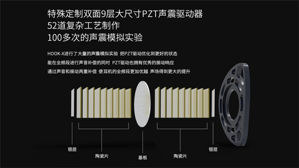 RAPTGO公司在HOOK-X上搭载了目前市面上最新的声学耳机系统技术,14.2mm平板单元和PZT单元混合发声系统,PZT单元也兼并全频段补偿器与骨传导功能。此套发声系统配合4.4mm接口和强大的播放器,能够发挥出可能你从未听到的声音实力,声音全部细节毫发毕现,丝丝入扣,耐听好听不刺激。