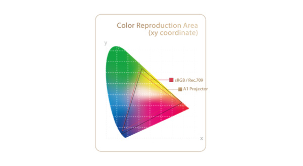 虽说Adobe RGB色域确实有着更宽广的色彩容积,能够显示更丰富的色彩,也是排版印刷的硬标准之一。但是现在的图片、视频作品基本都是在网络上传播,Windows的色彩空间依旧采用的是sRGB色域,所以sRGB色域的覆盖表现就很重要。同时用于视频制作的Rec.709标准依旧有着大量的使用人群和设备,同样也依旧是市场的主流标准。华硕ProArt Projector A1对sRGB和Rec.709均实现98%的色域覆盖,面对各种应用都能游刃有余。综合以上的卖点,使用华硕ProArt Projector A1就不用担心投影仪因为色彩太差,影响图片、视频等内容的呈现了。