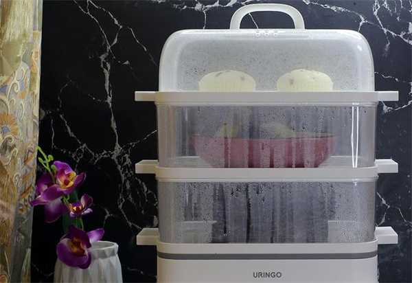 蒸锅共有三层,每一层都是采用的透明架设计,可以直观地看到内里的场景。