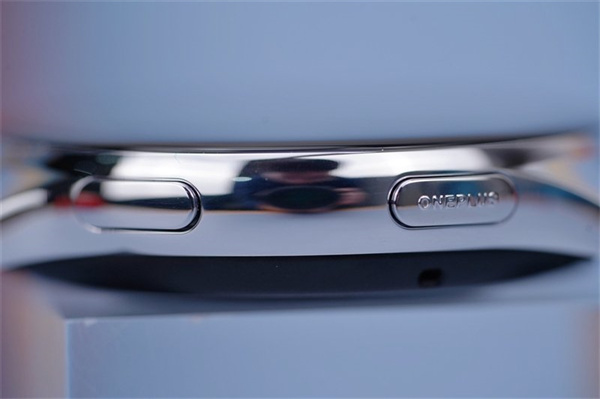 一加Watch的表冠采用了隐藏式的设计,几乎嵌入表身之中,不显突兀。在导航键上还有ONEPLUS的雕刻,方便及时找到按钮盲操作。