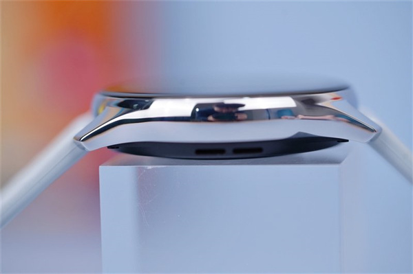 银色中框采用人工打磨,表面十分圆润和光滑。此外,银色表身两侧的下方,也能看到开孔,分别是扬声器和硅麦。一加Watch也支持蓝牙通话,放歌等操作。