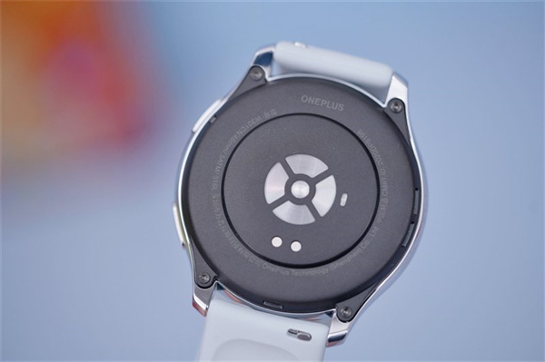 背面可以看到一加Watch的传感器,传感器的形状跟传统样式有所不同。面积更大,可以提高检测精度,缩短检测时间。