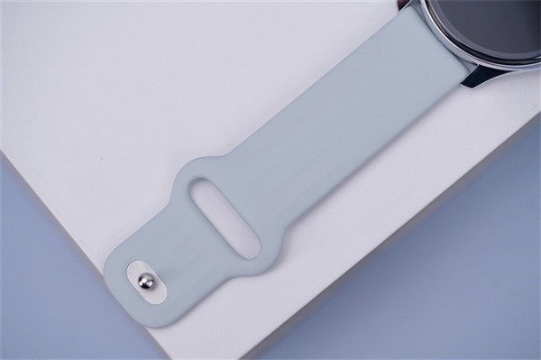 一加Watch包装中标配的是一条氟橡胶表带,比起一般的硅胶表带更为柔软舒适。表带的设计也很有新意,防滑槽等都采用了极具艺术感的线条,让其颜值大大提升。表扣是一体式的,佩戴时直接弯折过孔位,既保证佩戴稳固的同时也不会勒手。