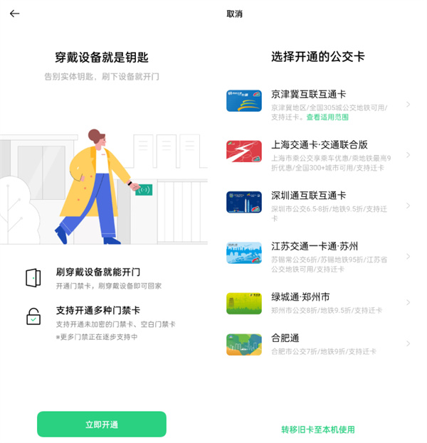 比如,它支持NFC,你可以把它当作门禁卡或者交通卡来使用。交通卡支持旧卡转移,因此不必担心原有的余额被浪费。公交卡也覆盖了全国的主要城市,并且支持几乎全国通用的京津冀互联互通卡,保证全国大多数地区的用户,都可以正常使用交通卡功能。
