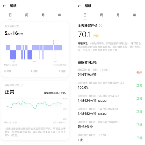 在白天,通过手动单次血氧检测,我们可以了解自己的血氧饱和度,及时休息,补充血氧来避免疲劳工作。而晚上的连续血氧检测,可以用来监测是否因打鼾而出现缺氧等危险情况,可以及早购买呼吸器来干预治疗。