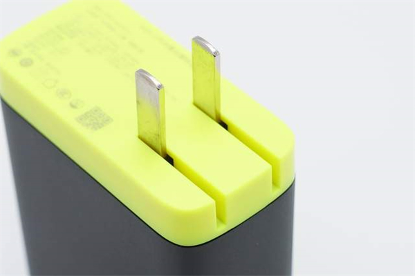 充电器整体采用多彩撞色设计,这款配色为酷力黑+荧光绿,插脚端与输出端两部分拼接而成,给原本深邃商务范添加一些酷潮色彩。