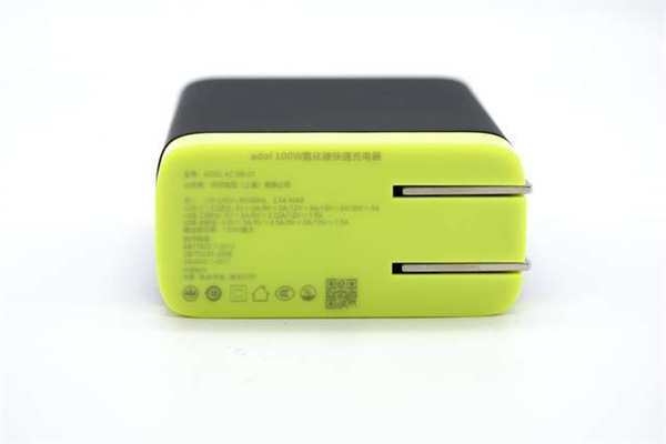 adol 100W氮化镓快速充电器长度约为75.09mm,高度约为60.26mm,宽(厚)度29.11mm,体积约为131.72cm³,以功率为100W计算,功率密度约为0.76W/cm³,表现中规中矩。