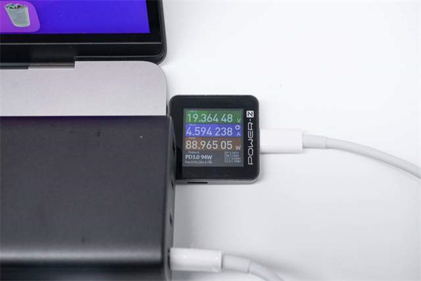 为MacBook Pro 16充电,功率为19.36V 4.59A 88.96W,基本已经达到了充电器的最大输出功率。