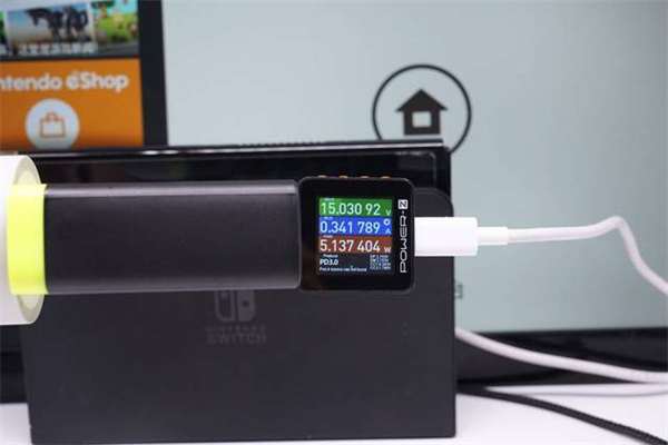 Switch底座TV模式支持PD快充,但想激活底座TV模式需要PD充电器支持15V3A及以上的PD快充档位,也就是充电器最低也要支持45W快充。使用USB-C1为Switch底座TV模式供电,充电器输出功率为15.03V 0.34A 5.13W,成功点亮底座TV模式。