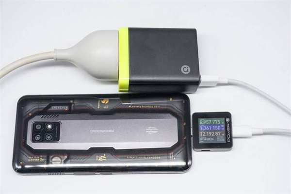 使用USB-A接口为红魔7 Pro充电,功率为8.95V 1.36A 12.19W。