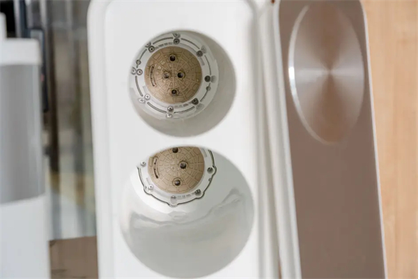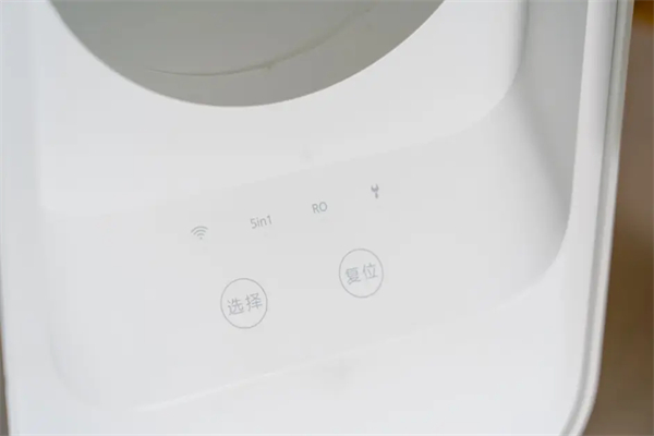 在底部还有两个触摸按键,还有四颗状态指示灯。可以指示当前的工作状态。如两个滤芯的到期提示或是故障报修及WIFI提示。