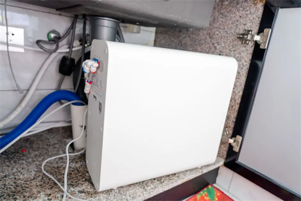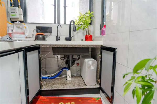 再在橱柜下面找个合适的地方,接上插座电源和进水管,一切安装就搞定了。