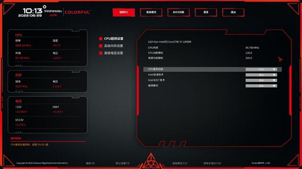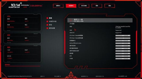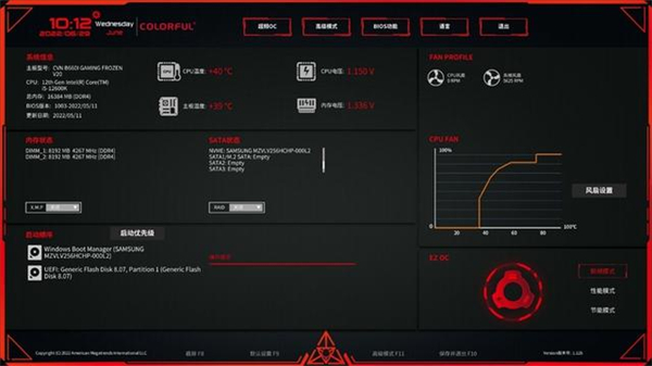 就功能而言,七彩虹CVN B660I GAMING FROZEN V20主板的BIOS该有的功能都有了,比如CPU和系统风扇都能支持玩家自由设置温度转速曲线,支持BIOS内直接刷新BIOS、支持内存超频、支持SAM、支持自由设置处理器的功耗墙等等。