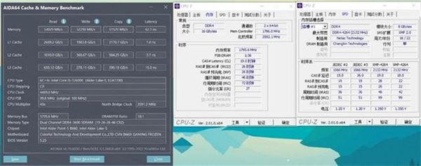 在3600MHz Gear 1模式下,内存的读写带宽有所降低,但是延迟则从69.3ns大幅度降到了62.1ns。