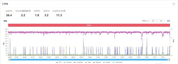 我们也对EZpad M10S的游戏表现进行了相关的测试,选择的游戏是国民级手游《王者荣耀》进行一局的游戏测试,平均帧率56.4帧。通过帧率曲线我们也能看到,整体游戏的体验还是较为流畅的。