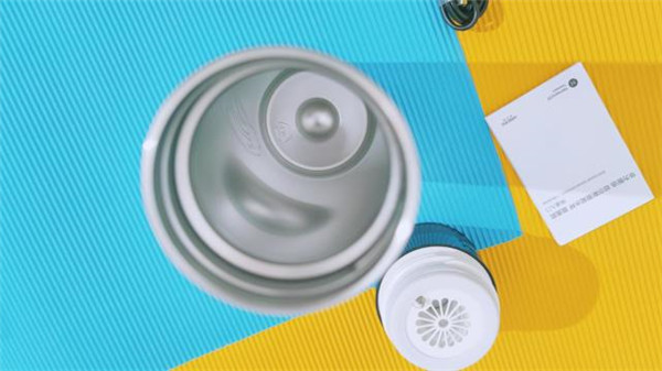 拧开杯盖之后,直接可以看到内胆的不锈钢材质,闪闪发亮,看起来很有质感。拿在手里,杯子表面的颜色涂层非常细腻温和,有一种类肤材质的感觉。我们接下来主要看这款杯子的主打互联功能。