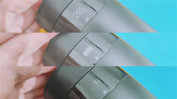 这款杯子的灵魂设计就是在杯盖上的小屏幕了。千万不要小看这个小小的屏幕,它能显示出的信息多种多样。例如再打开杯子盖儿之后忘记了关闭上锁按钮,在小屏幕上会提醒上锁。如果在杯子中倒上热水,小屏幕可以显示杯子中水的温度。当这款杯子在充电的状态下,小屏幕还可以显示充电状态。