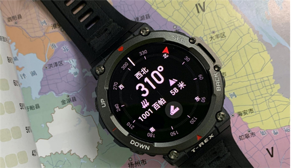 先来说说指北针。对于男生来说,会比较喜欢这样的野外拓展功能。 刚好最近在露营的时候,指北功能就用上了。在晚上很难通过观察环境辨别方向,但是有这款手表的话,分清楚东南西北是很简单的事情。当然了,看手机也可以,可是万一手机没电呢?对,还可以看月亮。从体验上看,手表指北针在整数方向的时候,会带有一个震动(线性马达!),能给人一个反馈,这是很小的细节但很加分。