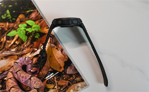 颜值是一款手表绕不开的点。其他人我不知道,就我个人而言是非常喜欢跃我这款手表的外观设计。 总体上是粗犷的户外风格,细看的话又有很多精致的地方,比如说好看的小螺丝钉,右侧保护传感器的护桥设计。