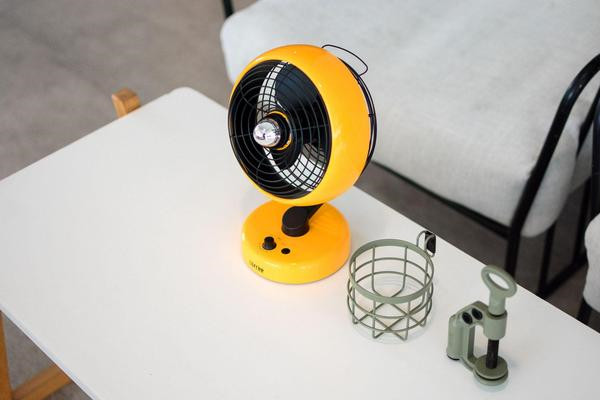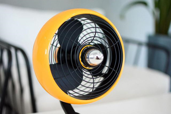 除了配色为蕉点+黑色的设计之外,大大的圆形的风扇头,采用了三叶式设计;配合着圆形底座,整体既有复古元素,也有时尚元素,非常精致。