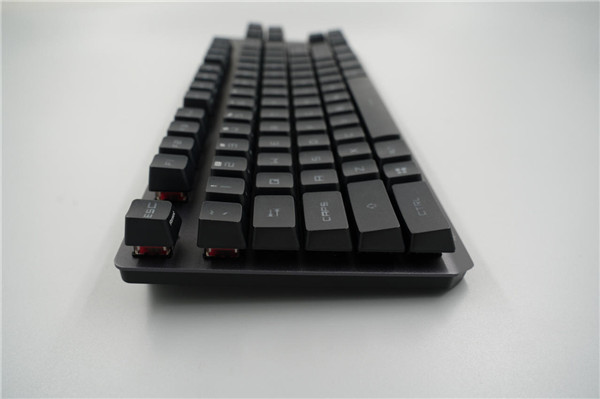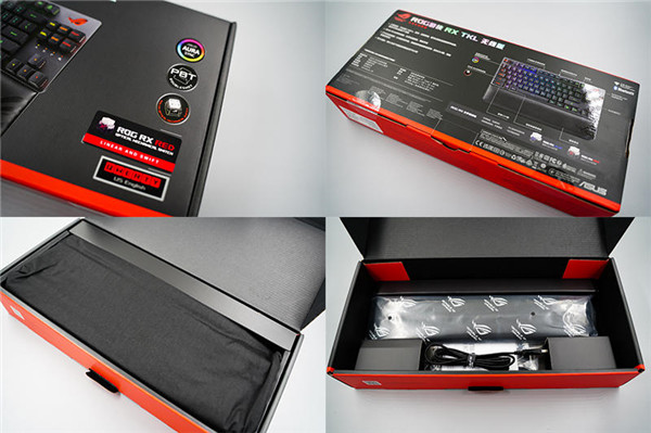 ROG 游侠RX TK采用了84键的TKL布局,比104规格少了数字小键盘,更倾向于游戏场合用,但也算是照顾到了办公用户的需求,只是没了数字小键盘,数字输入稍微有点不便。不过这样的规格,对于我家局促的电脑桌面还是很奏效的,小体积键盘有得有失,只能做出取舍了没办法。