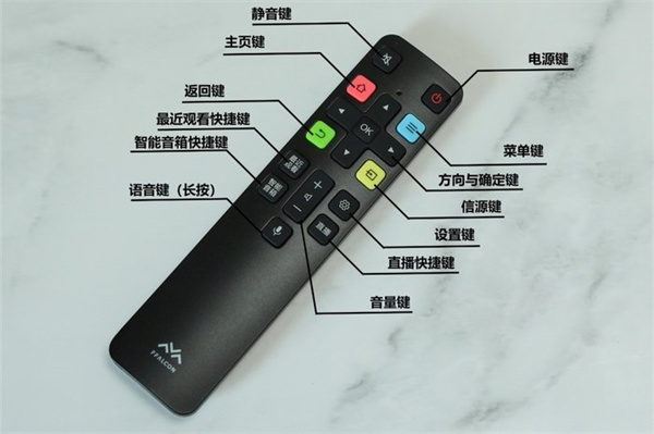 对比我们过去评测R645C时的遥控器,雷鸟为S545C配备的新款遥控器的变化在于为主要功能按键设计了分色,添加一些快捷功能入口,以及增加了静音键。遥控器同样为下滑开启的背板,采用两节7号电池。
