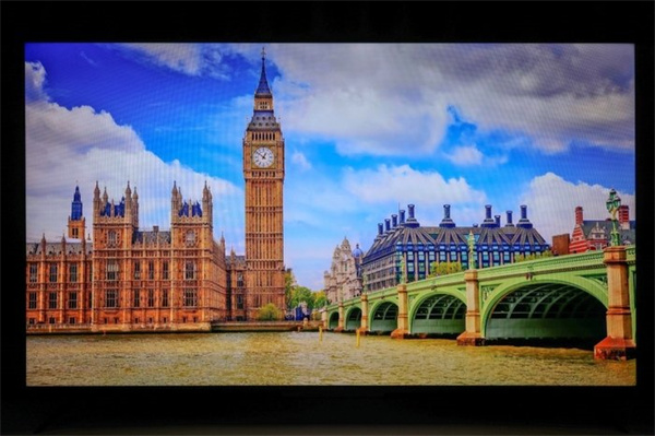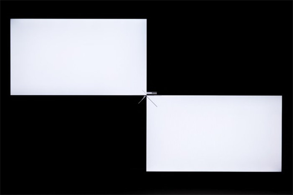 这个独特的测试素材在数个月后终于再次有其用武之地,对于这款多达80个背光分区的电视而言,用户能够明显看到背光分区启用与关闭的区别。屏摄样张中表现不明显,通过肉眼观察可见灯泡周围存在少量光晕,其余区域为优秀的黑场,VA软屏不存在漏光的优质特性也充分表现出来。