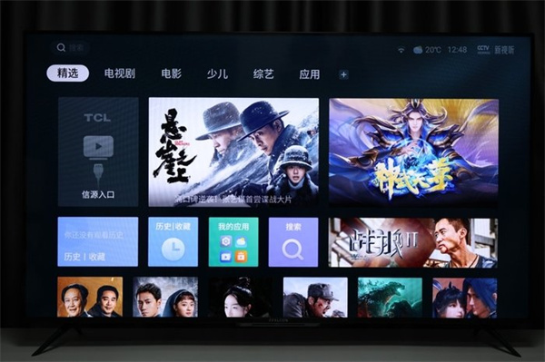 首先是主页布局方面,横向内容分区+纵向瀑布流的结构并没有变化,但可见的区别在于横向分区更为简化,仅剩精选、电视剧、电影、少儿、综艺、应用与自定义栏,同时信源入口所占区域也变得更小,为其他线上内容橱窗的展现提供了多一点空间。