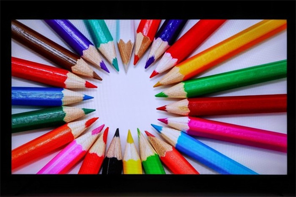 水果图中可见色彩饱满贴近现实,这块屏幕对于鲜艳色彩的还原性与同色对比度都十分出色,蔬果表面水滴、光泽等细节被充分保留。