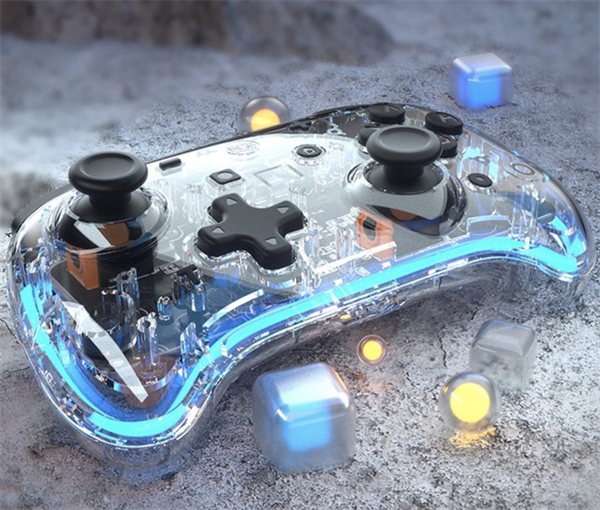 最后给大家推荐这款良值的游戏手柄,现如今到手价为168元。这款良值的游戏手柄最大的特点就是采用了全透明的设计,内部的电路设计清晰可见,让其变得高级感十足。同时这款手柄的体积非常小巧,即使是外出携带也会非常方便。不仅如此,这款手柄搭载了三种灯光模式,玩家在使用时可以根据自己的喜爱来调整不同的灯光模式,让这款手柄变得个性化十足。为了让连接手柄变得更加方便,这款手柄配备了专门的配对按键,使用起来非常便捷。